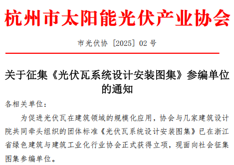 各会员单位:为进一步提升我市可再生能源行业标准化、规范化管理水平,健全标准体系架构,以高标准引领行业高质量发展,经协会二届五次理事会及标准化技术委员会审议通过,现正式发布《杭州市可再生能源行业协会团体标准管理办法》。同时,为响应市场发展趋势,破解行业共性难题,现同步公布 2025 年首批团体标准项目立项计划。一、2025 年首批立项团体标准清单1.《零碳园区创建指南》2.《零碳园区评价导则》3.《零碳工厂创建指南》4.《零碳工厂评价导则》二、标准工作计划1.2025 年 2 月,完成编写工作组组建并召开启动会议;2.2025 年 3 月,完成征求意见稿;3.2025 年 4 月,完成专家会议审查并报批公示。现协会公开征募参与各项团体标准编制的成员单位,欢迎与立项团体标准有关的可再生能源系统集成企业、投资开发企业、总包建设和安装企业、规划设计院、检测认证机构、科研机构、高校等单位加入标准的编制工作,并将《团体标准编写报名表》(附件 2)填好于2 月 28 日前发送至协会秘书处。联系人:王倩、王陈朴,联系电话:0571-87071860,邮箱:hzrea303@163.com。附件 1:《杭州市可再生能源行业协会团体标准管理办法》附件 2:《团体标准编写报名表》杭州市可再生能源行业协会2025 年 2 月 17 日